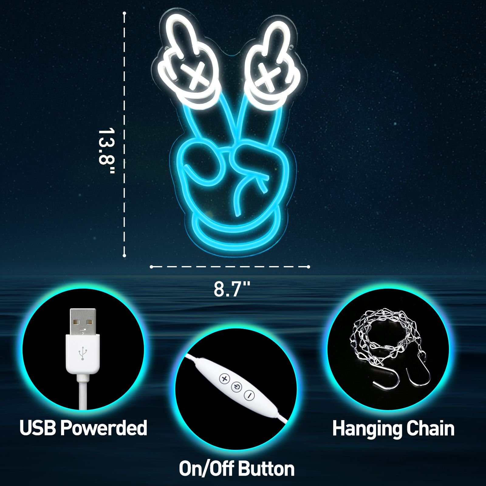 Gesture led light sign:Cartoon fist gesture design with unique design,the neon signs are perfect for your wall decor,can make your room more charming.Our neon sign must the beautiful and unique gift.The "Victory Gesture" neon light can be used for game room, bedroom, bar, dormitory, shop, living room or game zone decoration.