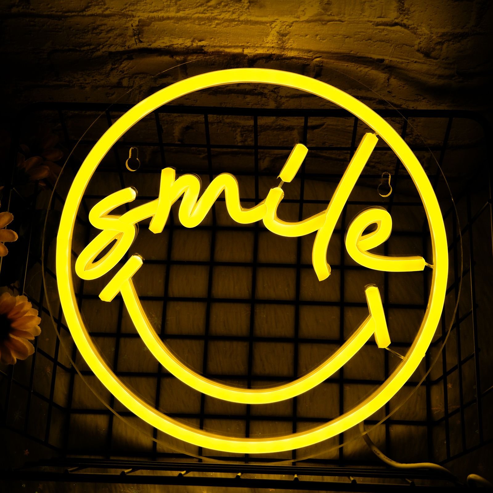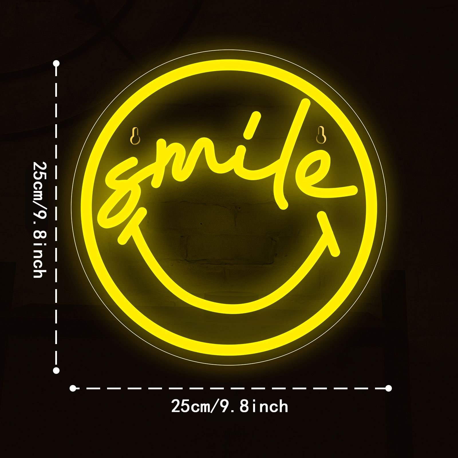 Smiley Neon Sign,this dimmable LED smiley neon light emits a soft and warm glow that creates a cozy and inviting atmosphere in any setting. Great for decorating, perfect for adding color to your bedroom or children's room.